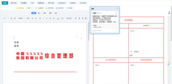 支持快速发文、自动套红,拟稿后一键发起流程。