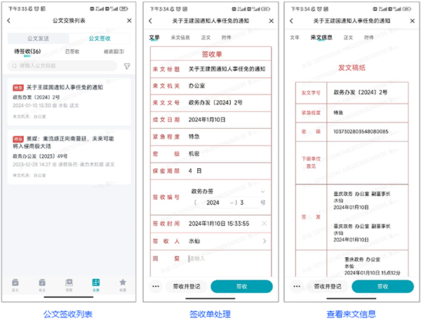 可查看签收状态、转办进度,实时跟踪公文流转情况。