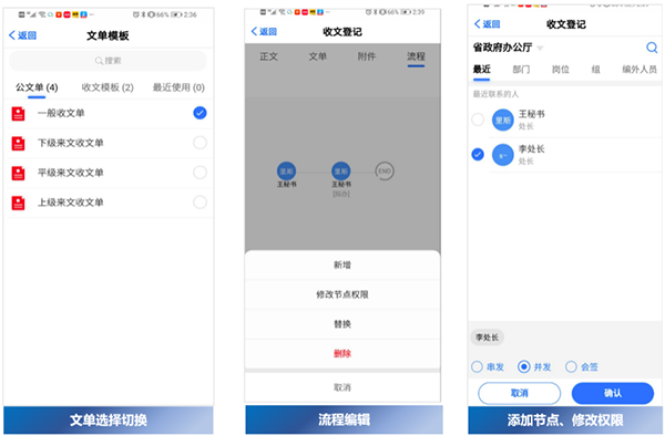 收文登记时自由流程办文,可按需配置所需流程,提升移动办文流程灵活性;