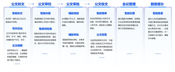 智能门户通过对话方式进行公文的编写、流转、存档、检索等业务的自动化、智能化处理,由多种公文管理相关智能体植入公文管理的各种应用场景,实现了公文管理的智能化全流程。