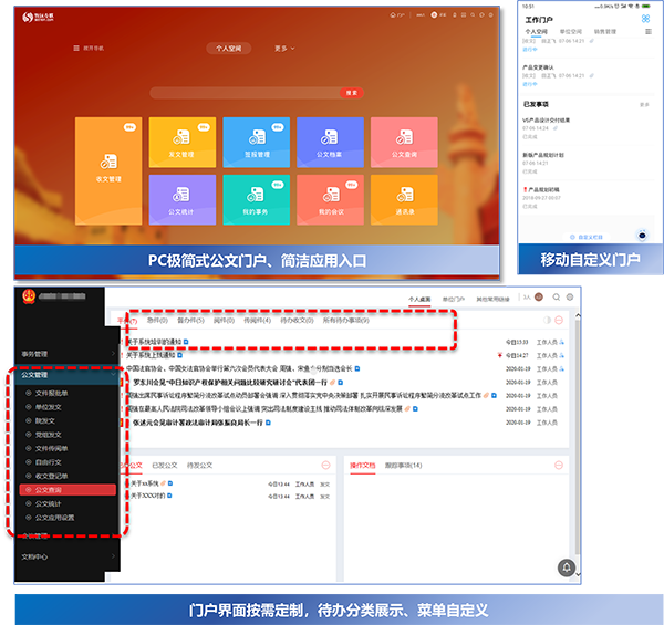 核心价值:实现千人千面的办公门户,降低多角色使用门槛,提升公文处理效率。