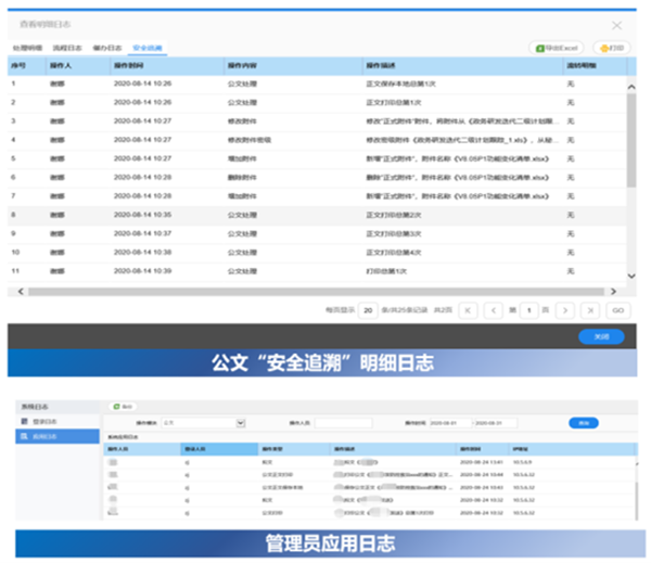通过操作日志与权限管理,保障公文全生命周期安全。