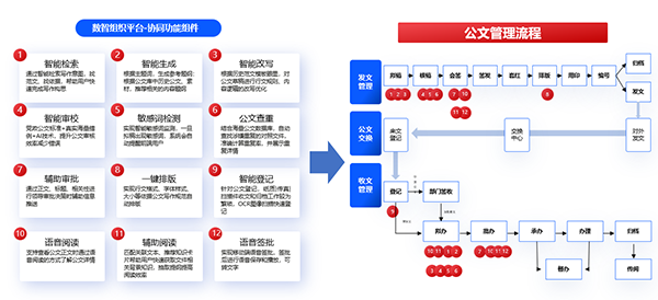 基于大模型能力,智能关联历史公文、政策依据、办理意见,为拟文、办文、决策提供智能参考与推荐。