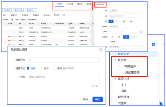 •人才储备中的简历可划分类别,目前支持创建三级分类