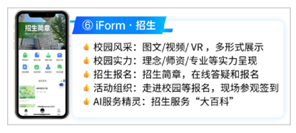 助力院校、培训机构实现VR校园展示、招生简章发布、在线报名、参观活动,AI招生助手提升咨询转化。
