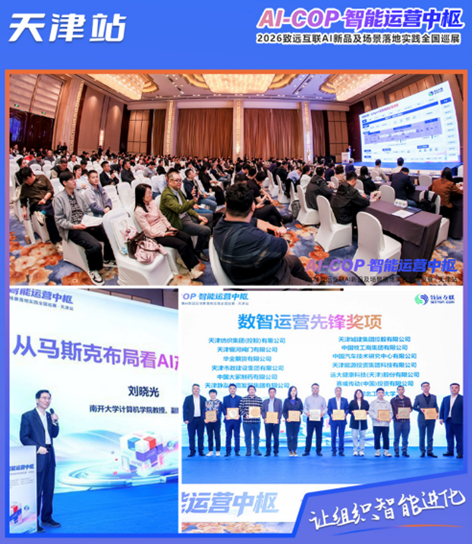 天津站巡展汇聚顶尖产学研嘉宾同台,南开大学计算机学院副院长、央国企与科技企业高管联袂出席。现场重磅颁发「数智运营先锋奖」,以真实成果验证AI-COP价值,引发全场共鸣;同时集中发布全栈方案,覆盖智能运营中枢、AI全场景、央国企创新、人力与智能合同,全面展现产品矩阵深度与落地实力。