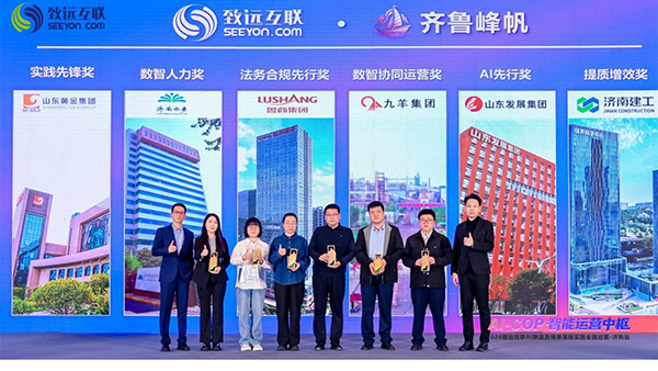 会上,致远互联助理总裁、山东省区总经理丁侃为双城标杆客户颁发“齐鲁峰帆”奖项。在济南站,山东黄金集团、鲁商集团、九羊集团、山东发展集团、济南建工、济南水务等企业荣获表彰;在青岛站,四方阿尔斯通、海发集团、山东中新食品、青岛国际机场、青岛大学、烟台蓝天集团等企业荣获表彰,充分展现了山东企业在数智化转型中的多元探索与标杆力量。